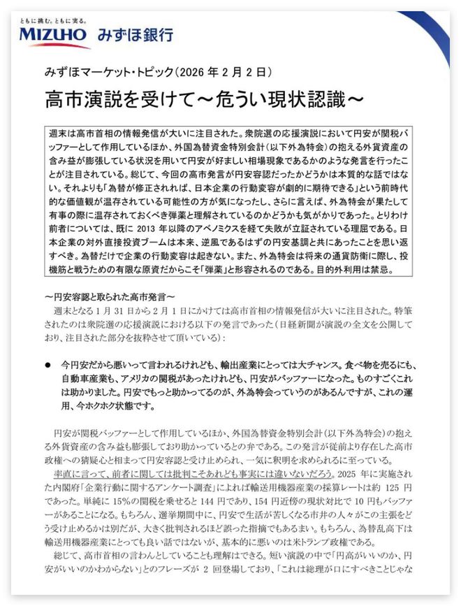 而瑞穗银行会公开向马上就要迎来关键选举的高市早苗叫板,是因为高市在2月初就日元贬值问题发表的一番讲话,让该银行感到了深深的“焦虑”。