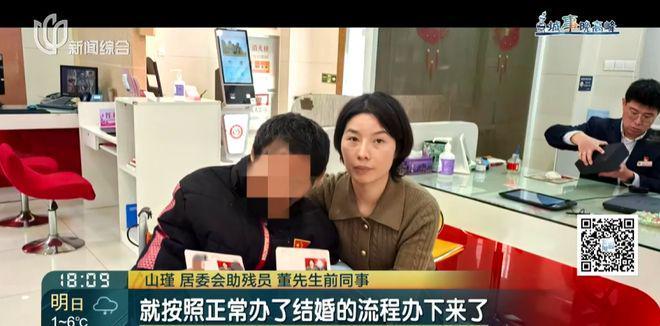 就按照正常办了结婚的流程办下来了,可能就是老董说话慢一点,他们全程也录像了,签字什么的就让他按手印。