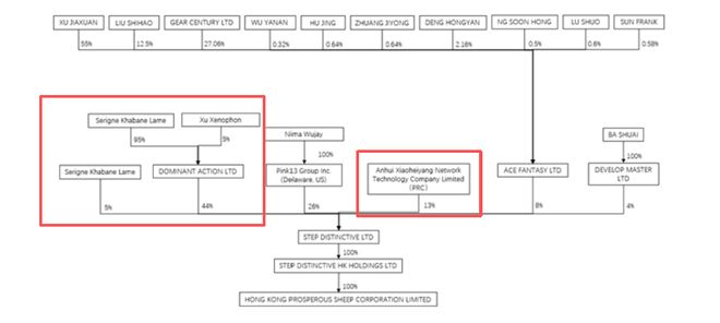 而在Step Distinctive的股东中,无语哥直接、间接持股共49%,Anhui Xiaoheiyang NetworkTechnology Company Limited(PRC)持股比例为13%。
