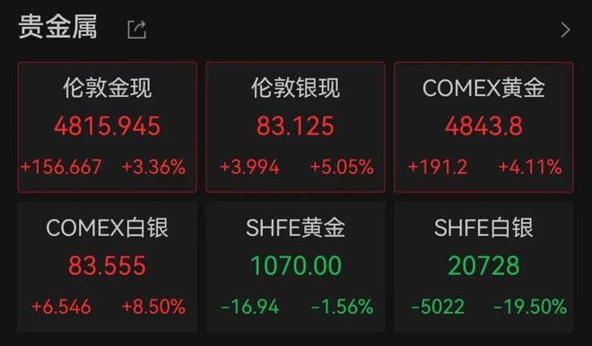 2月3日,现货黄金又再度上涨,截至发稿报4815美元/盎司,涨幅约3.36%。