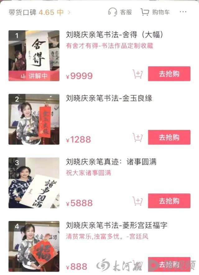 2月1日晚,大河报·豫视频记者注意到,75岁的著名演员刘晓庆现身直播间,镜头前她展纸挥毫,现场创作并售卖个人书法作品,因“亲笔字画”的定价再度引发网络热议:单“福”字售价1088元,四字作品如“平安喜乐”“紫气东来”标价高达3999元。