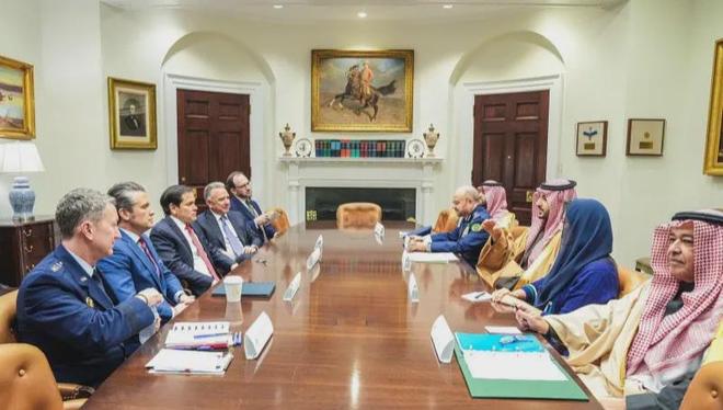 当地时间1月29日,哈立德(右侧居中者)在白宫与美国国务卿鲁比奥等人会晤 哈立德X账号